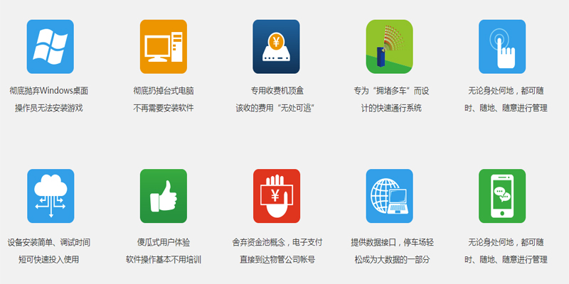系統(tǒng)10大特色1、桌面系統(tǒng)? 傳統(tǒng)的停車收費管理軟件使用Windows桌面系統(tǒng),存在系統(tǒng)權(quán)限難以管控、維護率高的問題。基于物聯(lián)網(wǎng)智慧網(wǎng)關(guān)的停車收費管理系統(tǒng),徹底屏棄了Windows桌面系統(tǒng),采用更專業(yè)、更穩(wěn)定的機頂盒技術(shù)為操作員提供方便易用的收費管理界面,通過云端網(wǎng)絡(luò)的網(wǎng)頁界面登錄實現(xiàn)夸操作系統(tǒng)的管理。 2、采用智慧網(wǎng)關(guān)技術(shù),實現(xiàn)真正的停車物聯(lián)網(wǎng) 聯(lián)網(wǎng)智慧網(wǎng)關(guān),既可以實現(xiàn)局域互聯(lián),又可以實現(xiàn)廣域互聯(lián)。將停車管理設(shè)備連接到網(wǎng)關(guān)的內(nèi)網(wǎng)接口,將互聯(lián)網(wǎng)絡(luò)連接到網(wǎng)關(guān)的外網(wǎng)接口,系統(tǒng)便可自動運行。 3、專用收費機頂盒,簡單易用 用機頂盒系統(tǒng),僅為專業(yè)收費管理所設(shè)計,用戶無法退出管理界面,更不能將機頂盒挪為其它用途。無須專業(yè)培訓(xùn),一看便知,一用便會,對操作人員的素質(zhì)要求大大降低,有效節(jié)約人力成本。 4、即裝即用,不用安裝軟件接通電源,系統(tǒng)即可工作。系統(tǒng)架構(gòu)簡單、安裝容易、不需安裝軟件、只需作簡單的調(diào)試,便可快速投入使用。 5、突破限制,跨地域遠程管理無論你身在何處,通過電腦、平板、手機或一切能夠上網(wǎng)的設(shè)備,都能隨時隨地進行遠程管理,并且可以實時的查看停車場的運營情況、及分析數(shù)據(jù)。即使你遠在地球另一邊的美國,也可對你的停車場經(jīng)營狀況了如指掌。 6、同一平臺,管理多個停車場物業(yè)公司申請一個帳號,可對自己物業(yè)的多個停車場進行管理,每個停車場可單獨指定管理人員和操作員。各停車場可單獨設(shè)定收費標準、單獨指定微信收款帳號。停車場的管理沒有數(shù)量限制。 互聯(lián)網(wǎng)時代,手機電子支付已成為一種新的時尚,車主通過APP或微信、支付寶掃碼支付也越來越成為人們的生活習(xí)慣。物業(yè)管理方可設(shè)定每個停車場“微信收費帳戶”的相關(guān)信息,當車主通過微信支付停車費時,相應(yīng)款項可實時收到物業(yè)的帳號中。 8、融合車牌識別新技術(shù),保證車輛通行效率 ???系統(tǒng)不僅采用視頻車牌識別技術(shù),還采用了智能快速道閘,不僅車輛識別時間大為縮短,而且開閘反應(yīng)的時間也極大縮短,充分保障系統(tǒng)適應(yīng)車位少、車輛多的大流量應(yīng)用,同時也充分保證了車輛快速通行的效率。 9、設(shè)備故障自動診斷、自動申報物聯(lián)網(wǎng)智慧網(wǎng)關(guān)具有對設(shè)備的管理功能,可自動診斷設(shè)備的運行或工作狀態(tài),并將相關(guān)診斷信息實時自動申報到相關(guān)的維護管理服務(wù)公司,服務(wù)公司可進行遠程維護或主動發(fā)起維修服務(wù),以保證在最短的時間內(nèi)恢復(fù)系統(tǒng)的正常運營。物業(yè)公司可以在自己的帳號內(nèi)看到設(shè)備的維護保養(yǎng)記錄,并可對其服務(wù)提出評價和建議。這樣,通過設(shè)備的“在線”式維護管理,在使設(shè)備維護即實時,又省心。 10、可真實落地的物業(yè)大數(shù)據(jù)平臺德立云平臺不僅是提供設(shè)備管理和運營服務(wù)的平臺,還提供數(shù)據(jù)開發(fā)接口,并可為運營客戶提供數(shù)據(jù)分析服務(wù),真正做到你的數(shù)據(jù),你運營,你作主! 停車管理系統(tǒng)主要特色