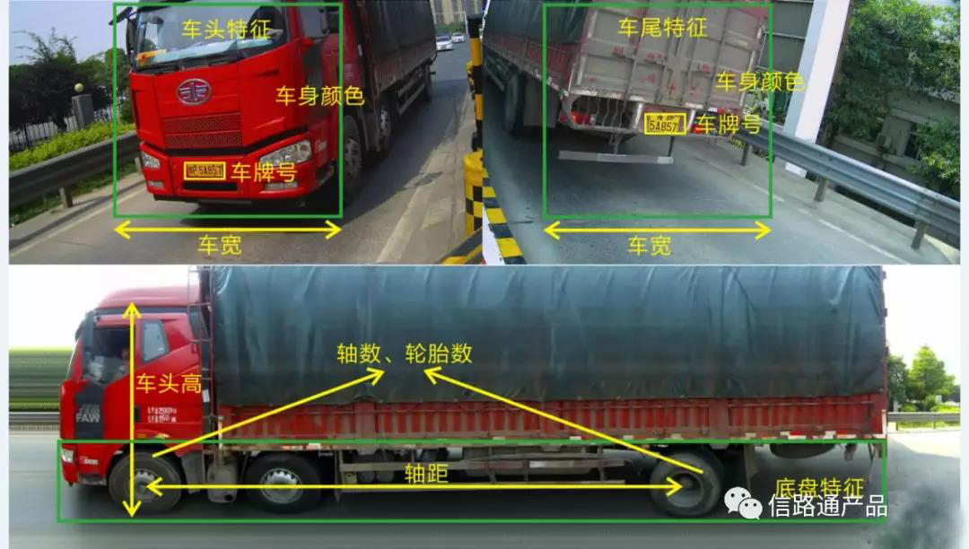2)?車型識別:精準識別車型,區分客車、貨車、分別根據軸數,長度,定義車輛類型.