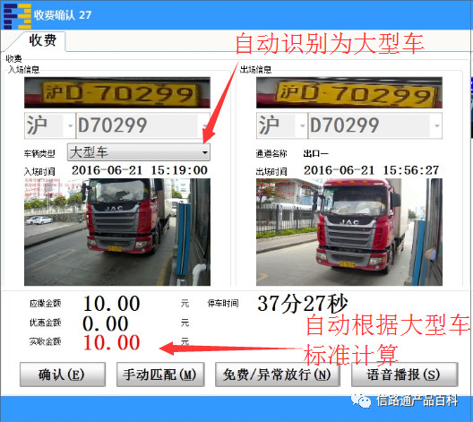 系統自動計算對應車型的繳費金額,無需人工選擇,避免至少10%的收費漏洞 |